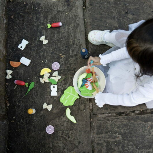 Make endless varieties of salad with the cutest toy salad set on the market. The ultimate kit, complete with 40 different wooden and felt pieces.